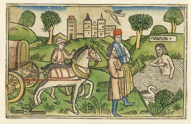 8 When Elisha the man of God heard that the king of Israel had torn his robes, he sent him this message: ‘Why have you torn your robes? Make the man come to me and he will know that there is a prophet in Israel.’ 9 So Naaman went with his horses and chariots and stopped at the door of Elisha’s house. 10 Elisha sent a messenger to say to him, ‘Go, wash yourself seven times in the Jordan, and your flesh will be restored and you will be cleansed.’
